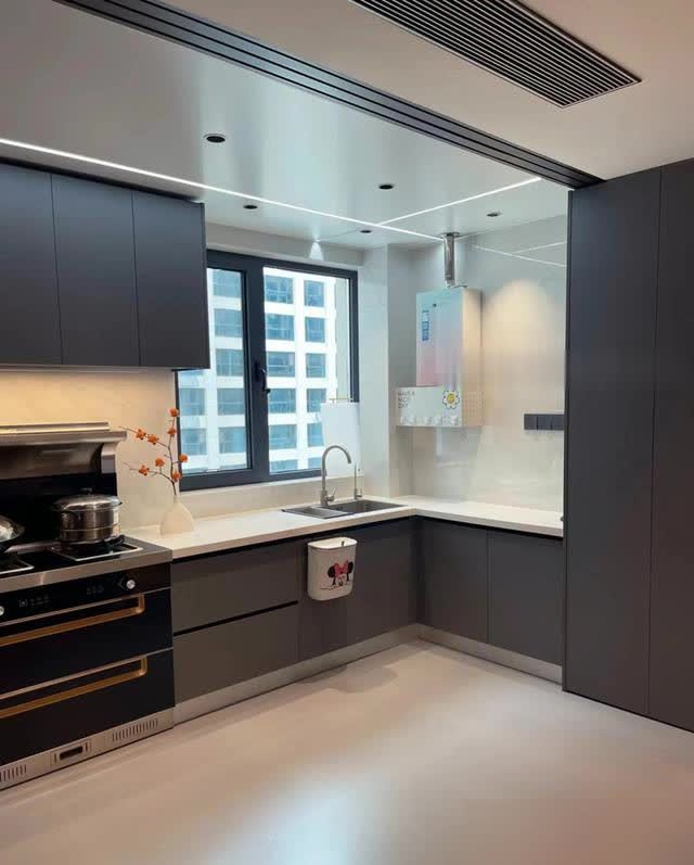 洗碗机烤箱直接嵌进柜体,操作台清清爽爽不留油污战场。