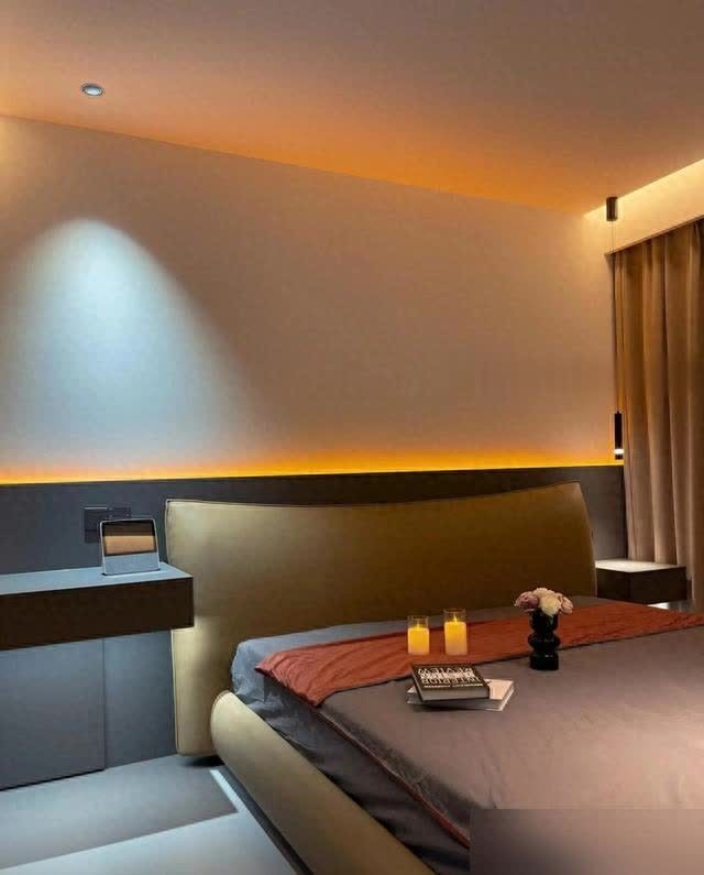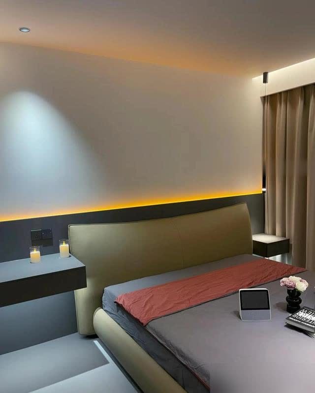 现在某些套餐装修搞满屋筒灯,晚上亮得像手术室,真不如把钱砸在这种见光不见灯的设计上。