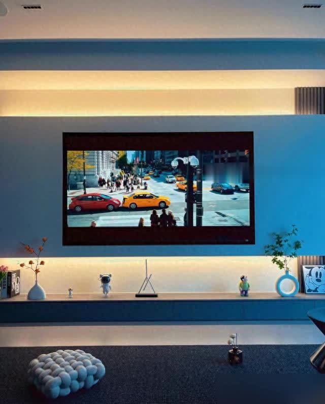 电视墙做成内嵌式收纳柜,省了花里胡哨的背景造型,反倒显出一股子大气。
